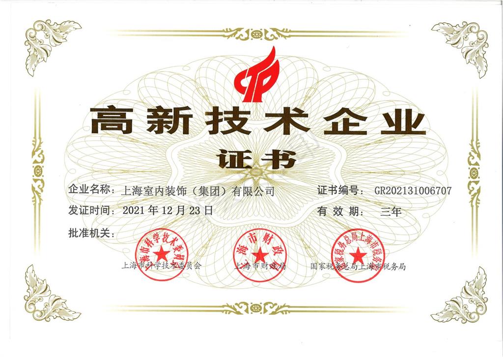 日前,上海室内装饰(集团)有限公司通过层层审核和公示,荣获了由上海市科委、上海市财务局、上海市税务局共同颁发的“高新技术企业”称号。高新技术企业是指在《国家重点支持的高新技术领域》内,持续进行研究开发与技术成果转化,形成企业核心自主知识产权,并以此为基础开展经营活动的企业。这项来之不易的荣誉充分肯定了室装集团在谋求创新研发,加强高新技术成果转化等方面所做的持续努力,也是室装集团在取得科技成长和技术进步,锤炼核心能力上的一个重要里程碑。