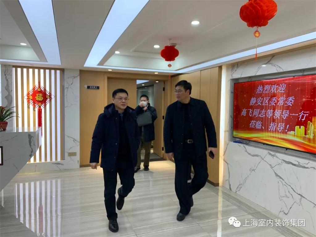 2022年2月18日,静安区委常委、区纪委书记高飞同志前来室装集团开展调研考察,随行的还有区投促办和区纪委等相关部门领导。按照静安区“促发展,保安全”大走访,大排查的工作要求,室装集团作为静安区重点企业之一,在新年伊始便感受到了来自静安区委、区政府的重视和关怀。室装集团董事长兼总经理倪兵带领集团经营团队对高飞书记一行的到来表示热烈欢迎。